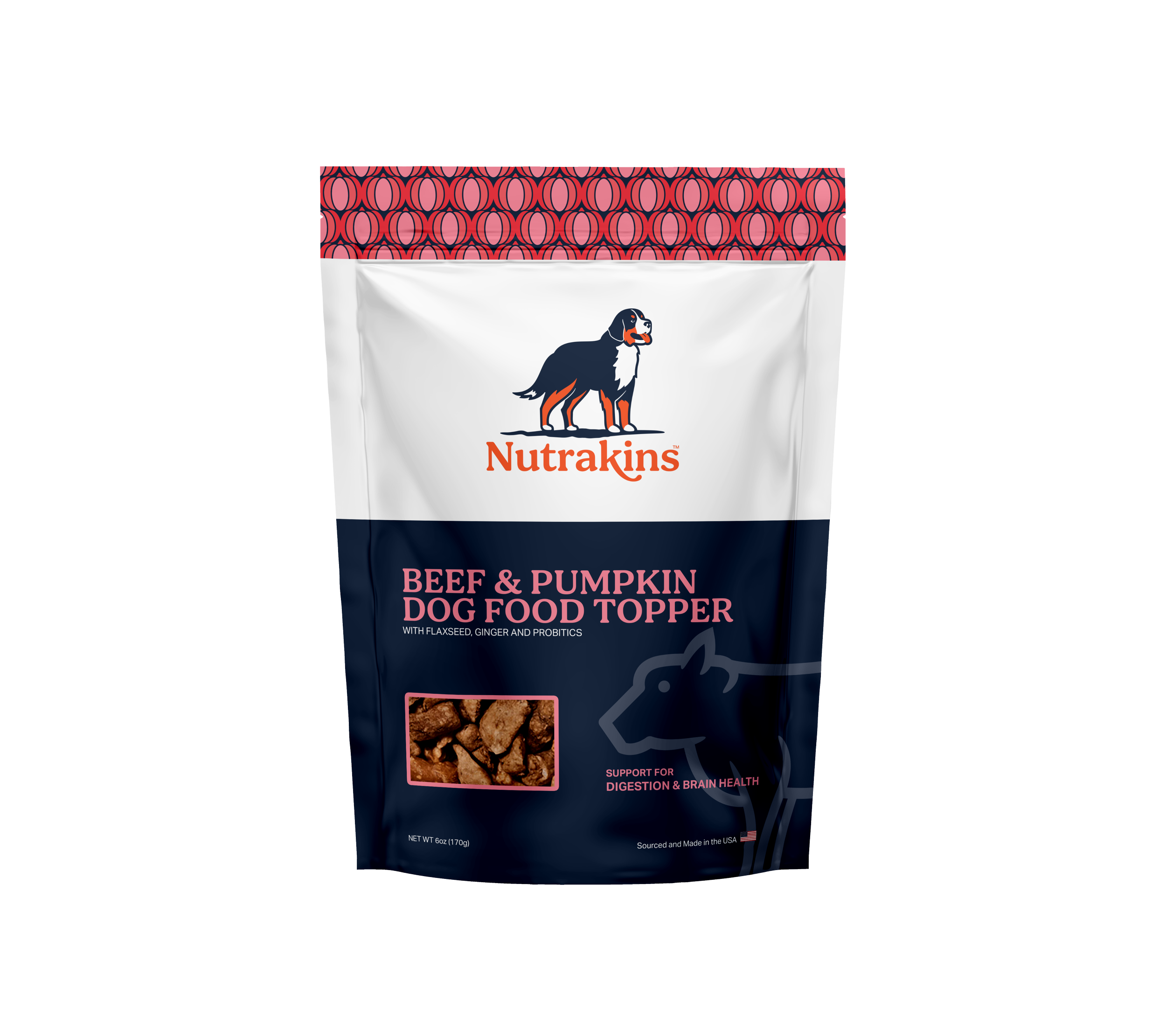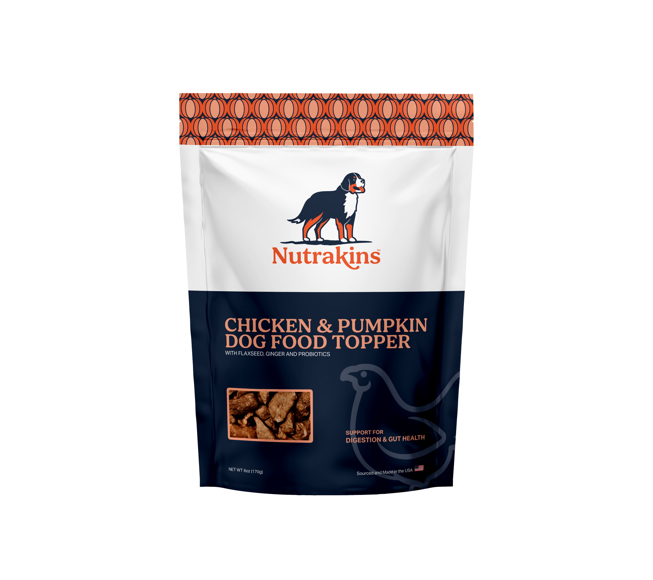 Nutrakins is a pet food brand specializing in products with pumpkin as its primary ingredient. The founder’s Bernese Mountain Dog was chosen as the mascot the brand to bring a fun, friendly look to the brand. Bright orange was chosen along with a rich navy to reference pumpkins and bring a calming base color into the palette. A pumpkin pattern was created for the packaging along with illustrations and a secondary color palette to go along with each product flavor offering.